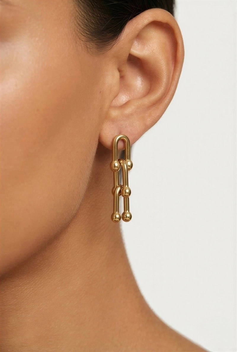 Çelik Top Detay Nal Model Gold Altın Kaplama Çelik Küpe