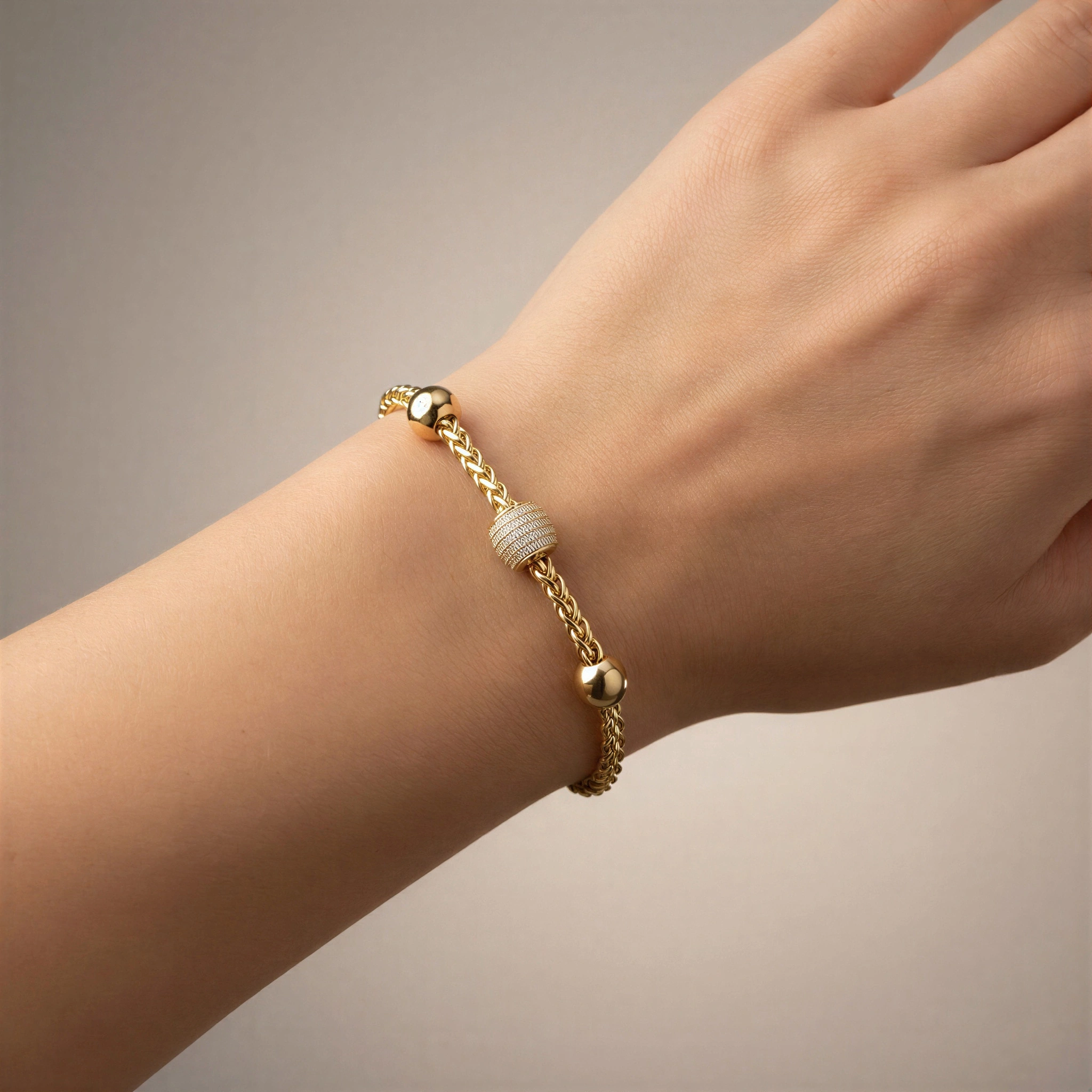 Örgü Zincir Taş Detay Gold Altın Kaplama Bileklik