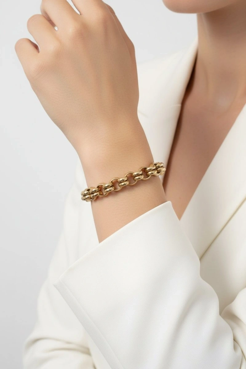 Çift Halka Geçişli Gold Altın Kaplama Çelik Bileklik