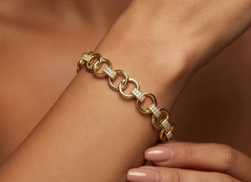 Çift Halka Model Gold Altın Kaplama Bileklik