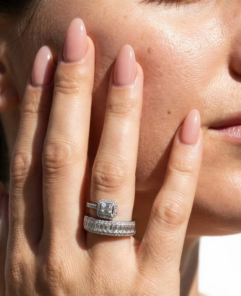 Çift Sıra Baget Tek Taş Model Beyaz Altın Kaplama Yüzük