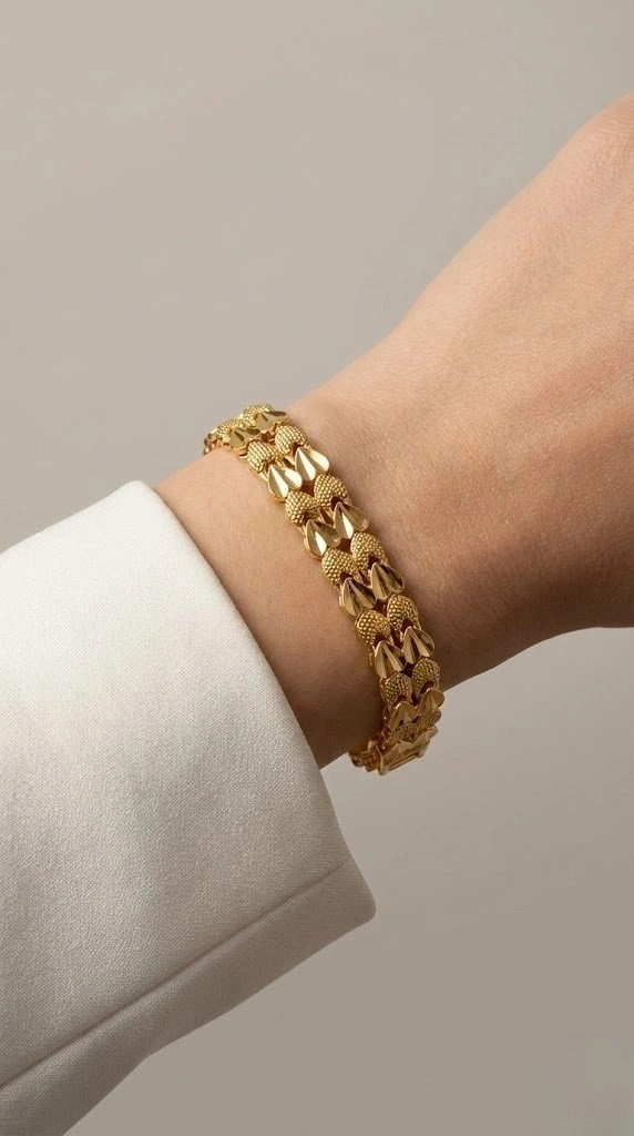 Çift Sıra Desenli Kalp Detay Gold Altın Kaplama Kuyum Bileklik