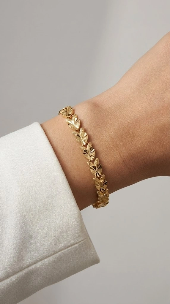 Tek Sıra Desenli Kalp Detay Gold Altın Kaplama Kuyum Bileklik