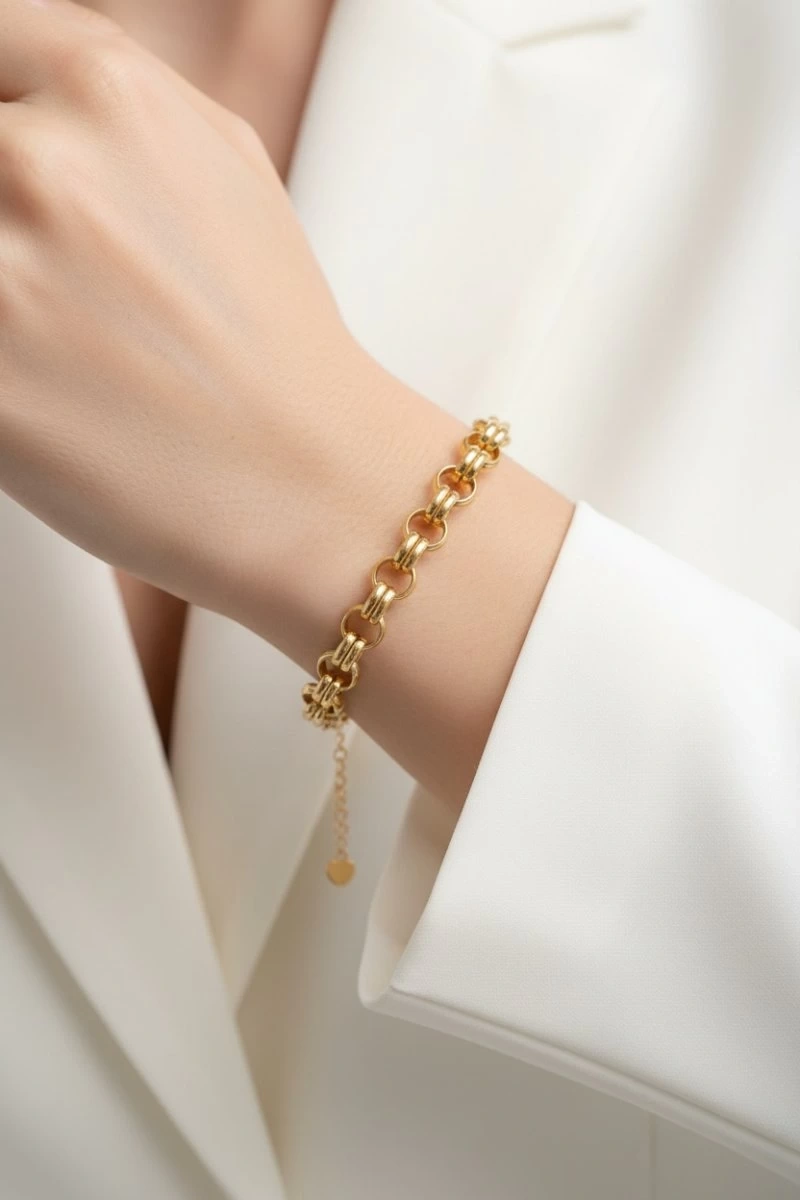 Çift Sıra Detay Olimpos Model Gold Altın Kaplama Bileklik