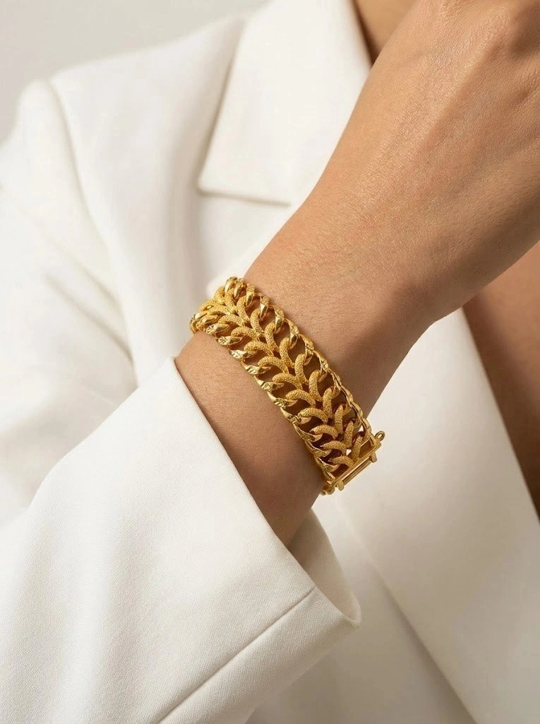 Çift Sıra Sim Geçiş Detaylı Gold Altın Kaplama Kuyum Bileklik