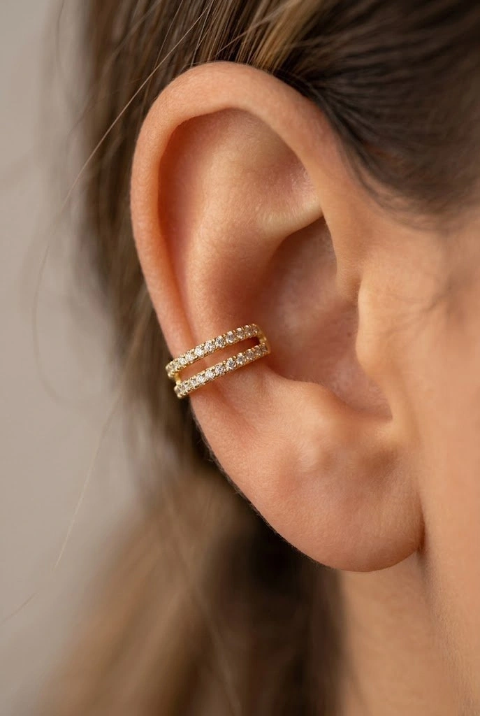 Çift Sıra Taş Model Gold Altın Kaplama Ear Cuff