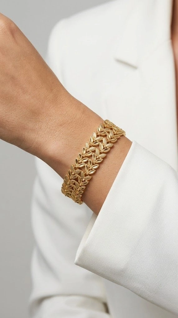 Çift Sıra Yaprak Detay Gold Altın Kaplama Kuyum Bileklik