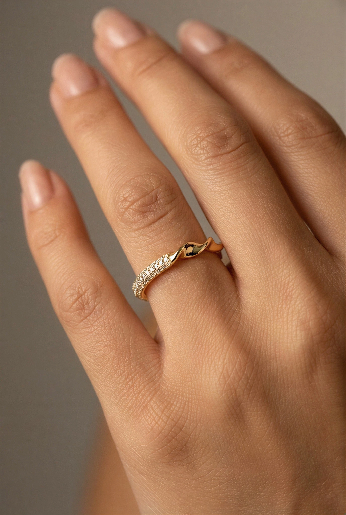 Yarı Sarmal Yarı Su Yolu Model Gold Altın Kaplama Yüzük