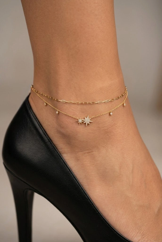Çift Zincir Kuzey Yıldızı Model Gold Altın Kaplama Halhal