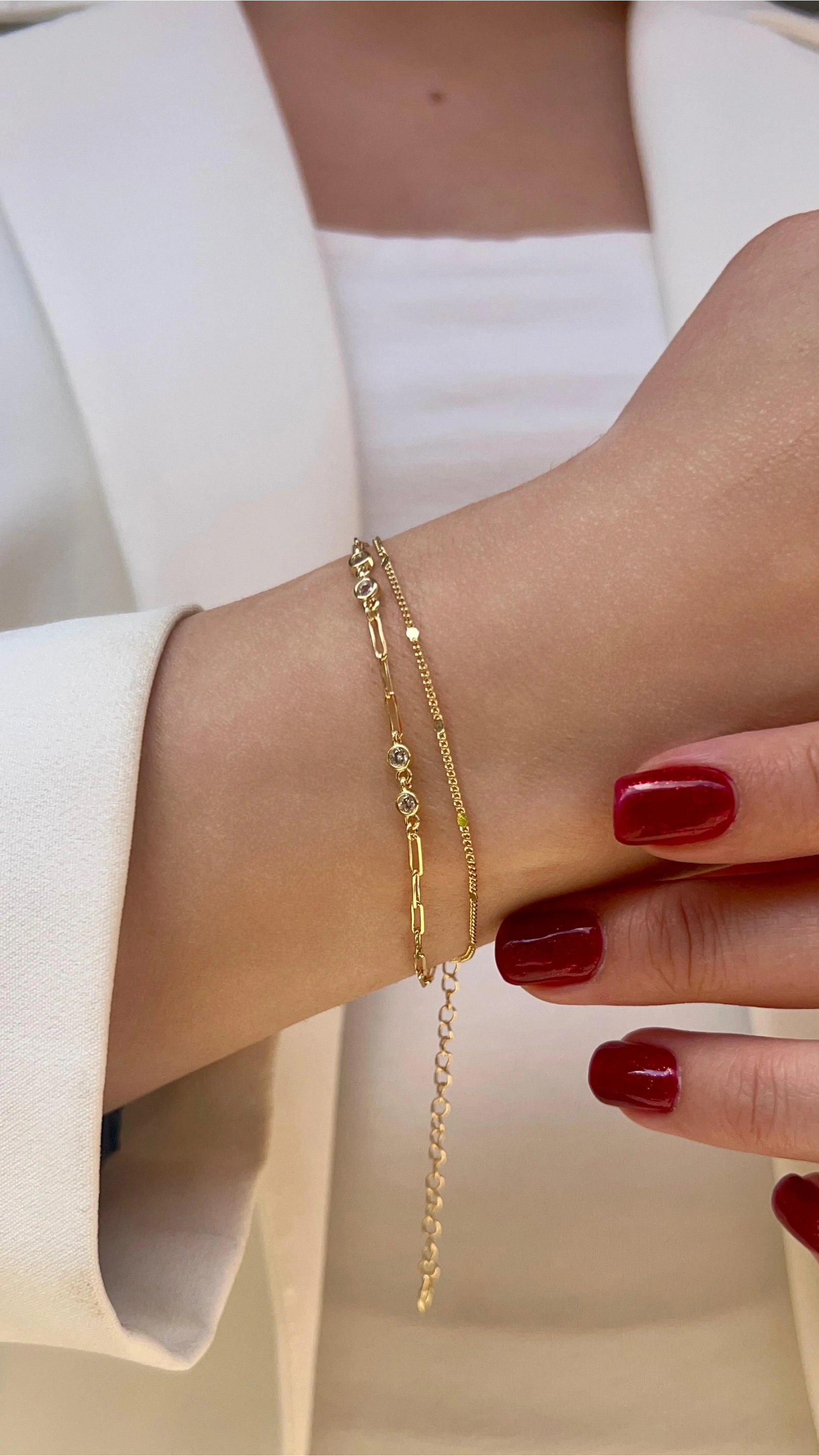 Çift Zincir Ataç Model Gold Altın Kaplama Bileklik