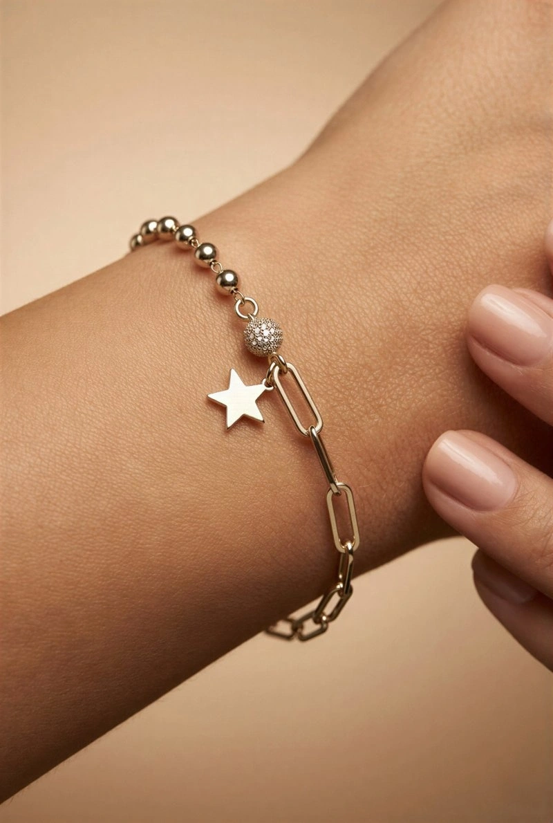 Çift Zincir Yıldız Model Gold Altın Kaplama Bileklik