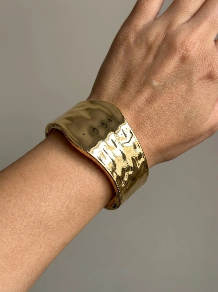 Kalın Derin Çizgi Detay Gold Altın Kaplama Kelepçe