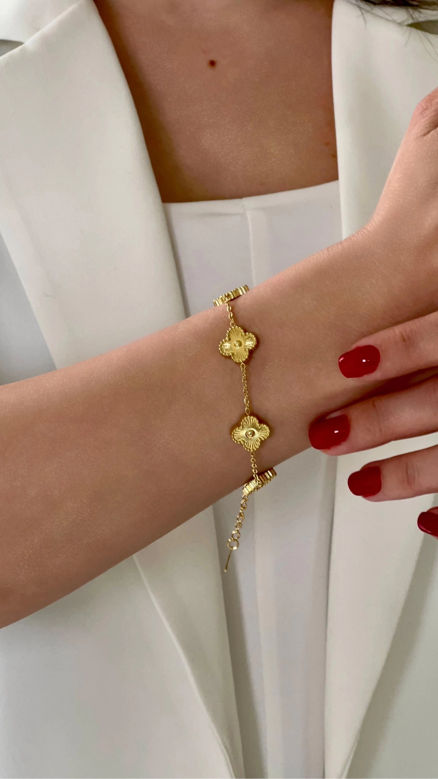Çizgili Yonca Model Gold Altın Kaplama Çelik Bileklik