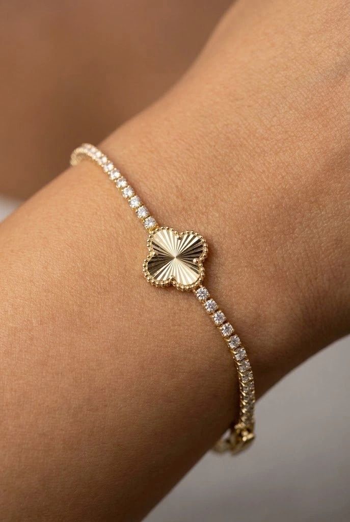 Çizgili Yonca Model Gold Altın Kaplama Su Yolu Bileklik
