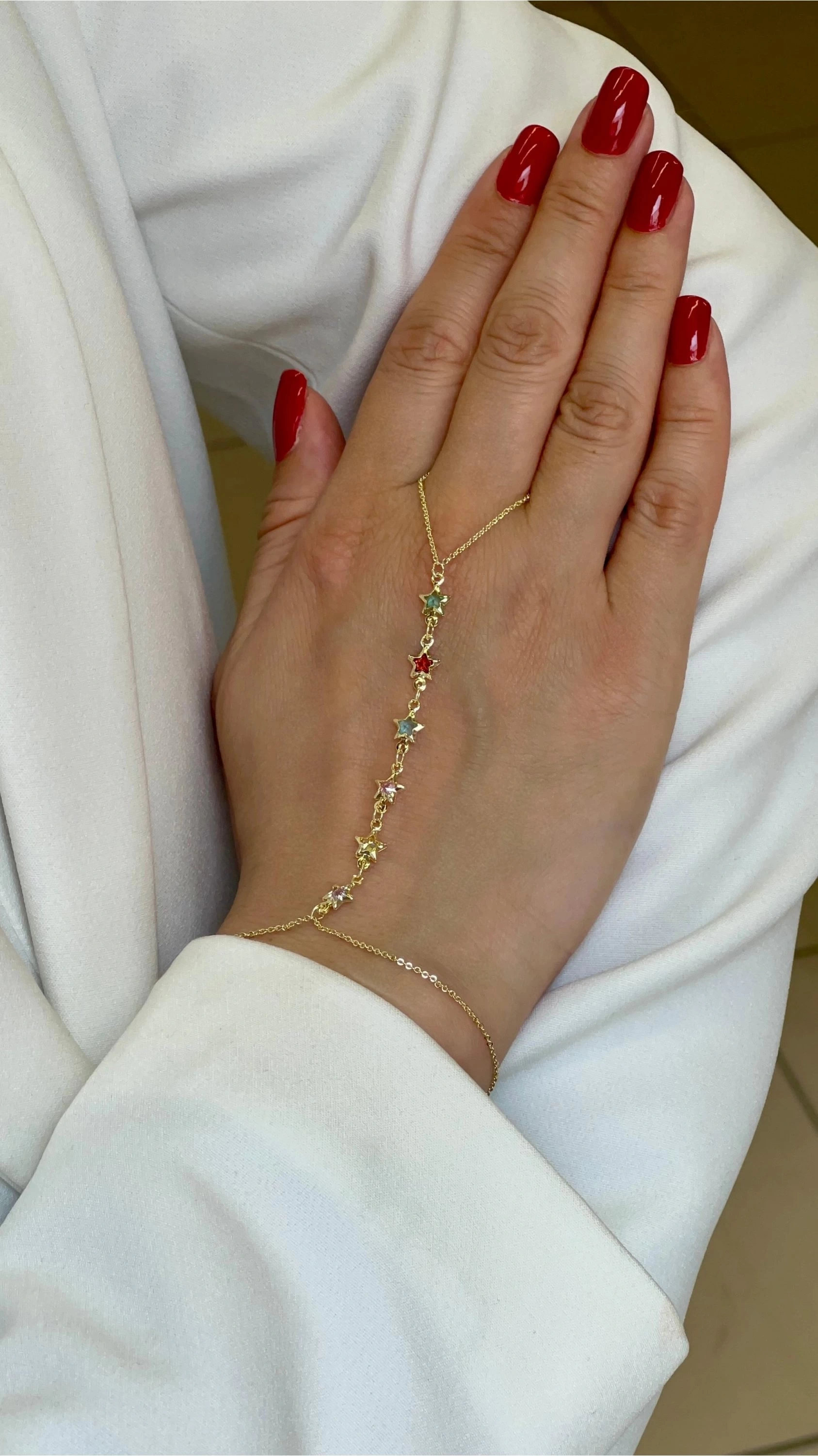 Çok Renkli Sıralı Yıldız Model Beyaz Altın Kaplama Şahmeran