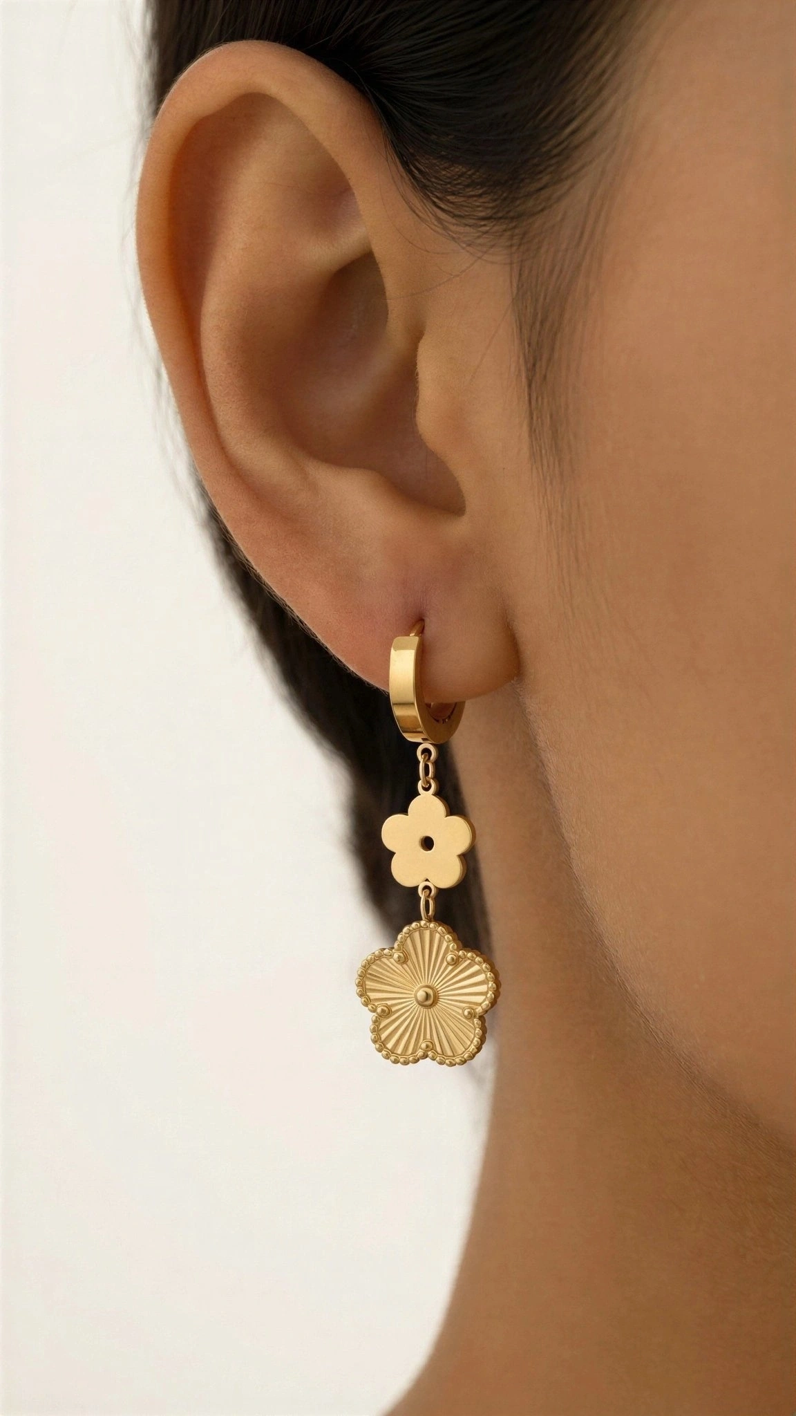 Sallantılı Yonca Model Gold Altın Kaplama Çelik Küpe