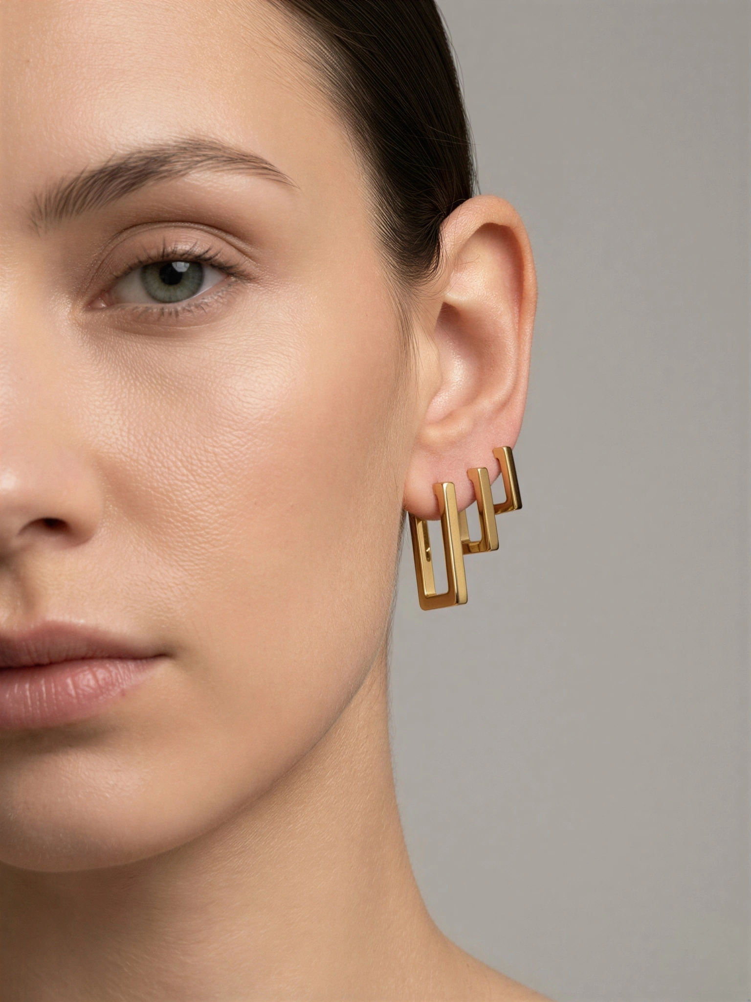 Çoklu Dikdörtgen Model Gold Altın Kaplama Çelik Küpe