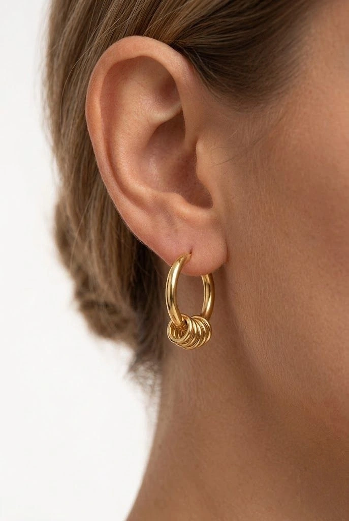 Çoklu Halka Model Gold Altın Kaplama Küpe