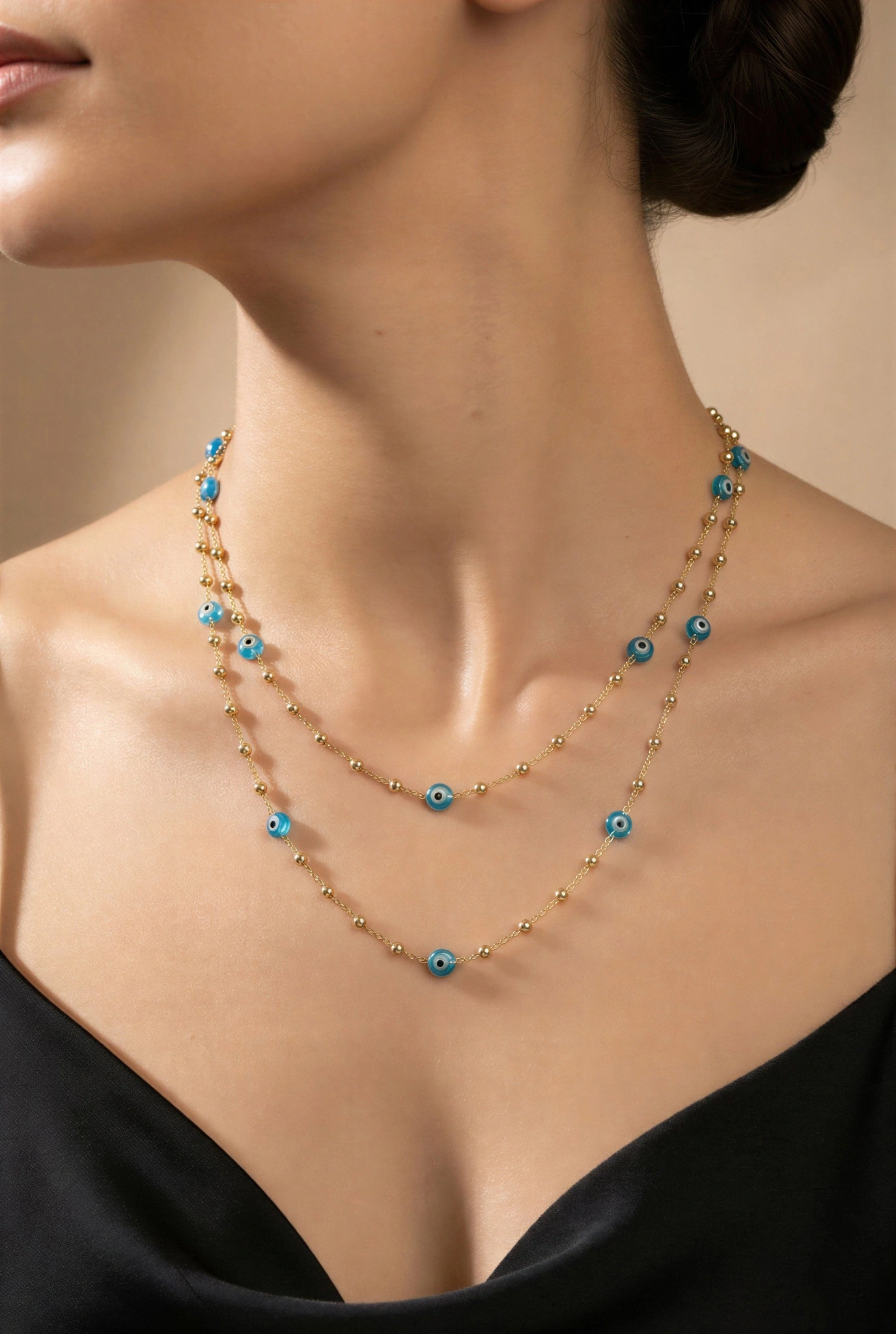 Uzun Dorika Zincir Nazar Boncuk Detay Gold Altın Kaplama Kolye