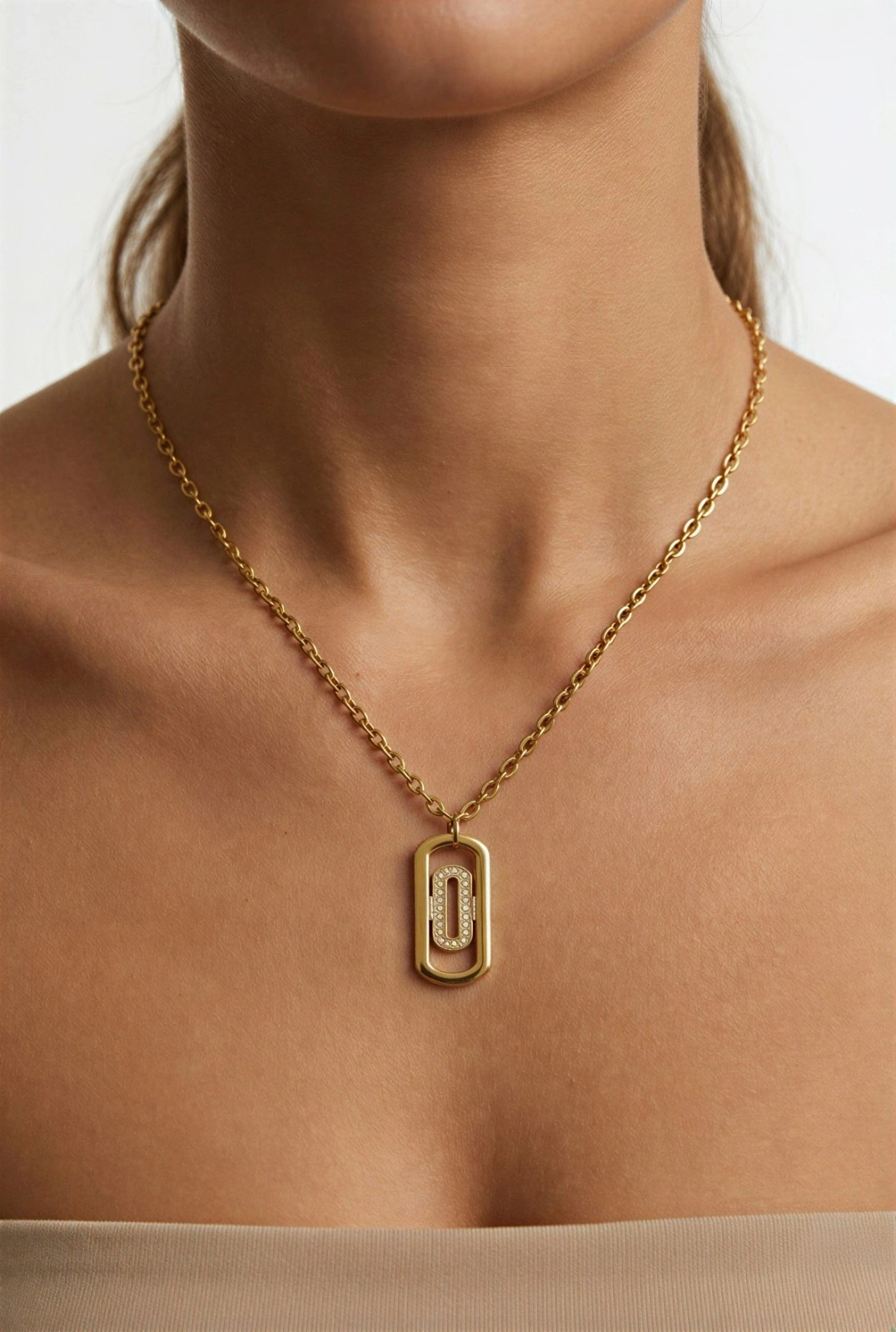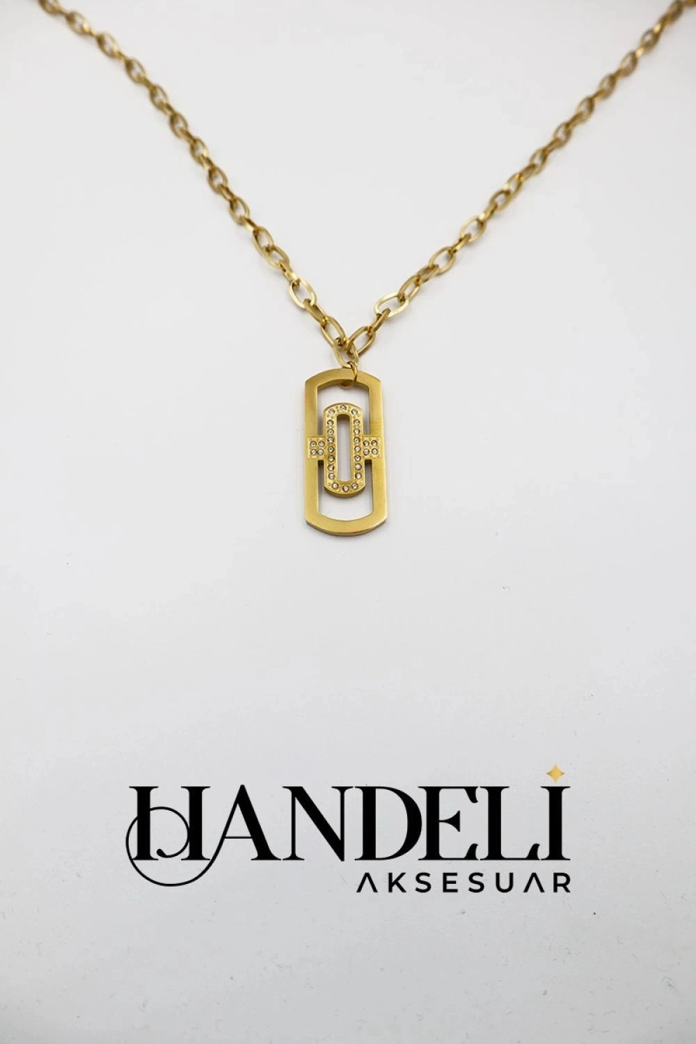 Cupid Model Tam Taşlı Gold Altın Kaplama Kolye