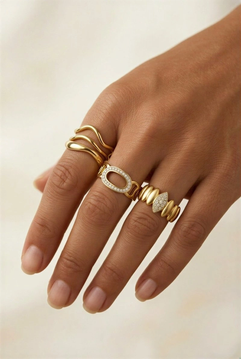 Dalga Model Altın Kaplama Kombin Yüzük