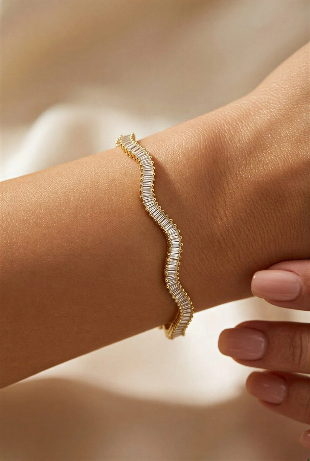 Dalgalı Kıvrım Su Yolu Model Gold Altın Kaplama Bileklik