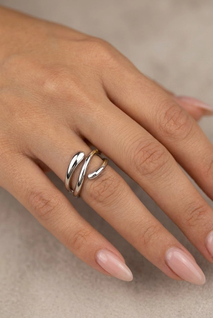 Damla Model Beyaz Altın Kaplama Yüzük