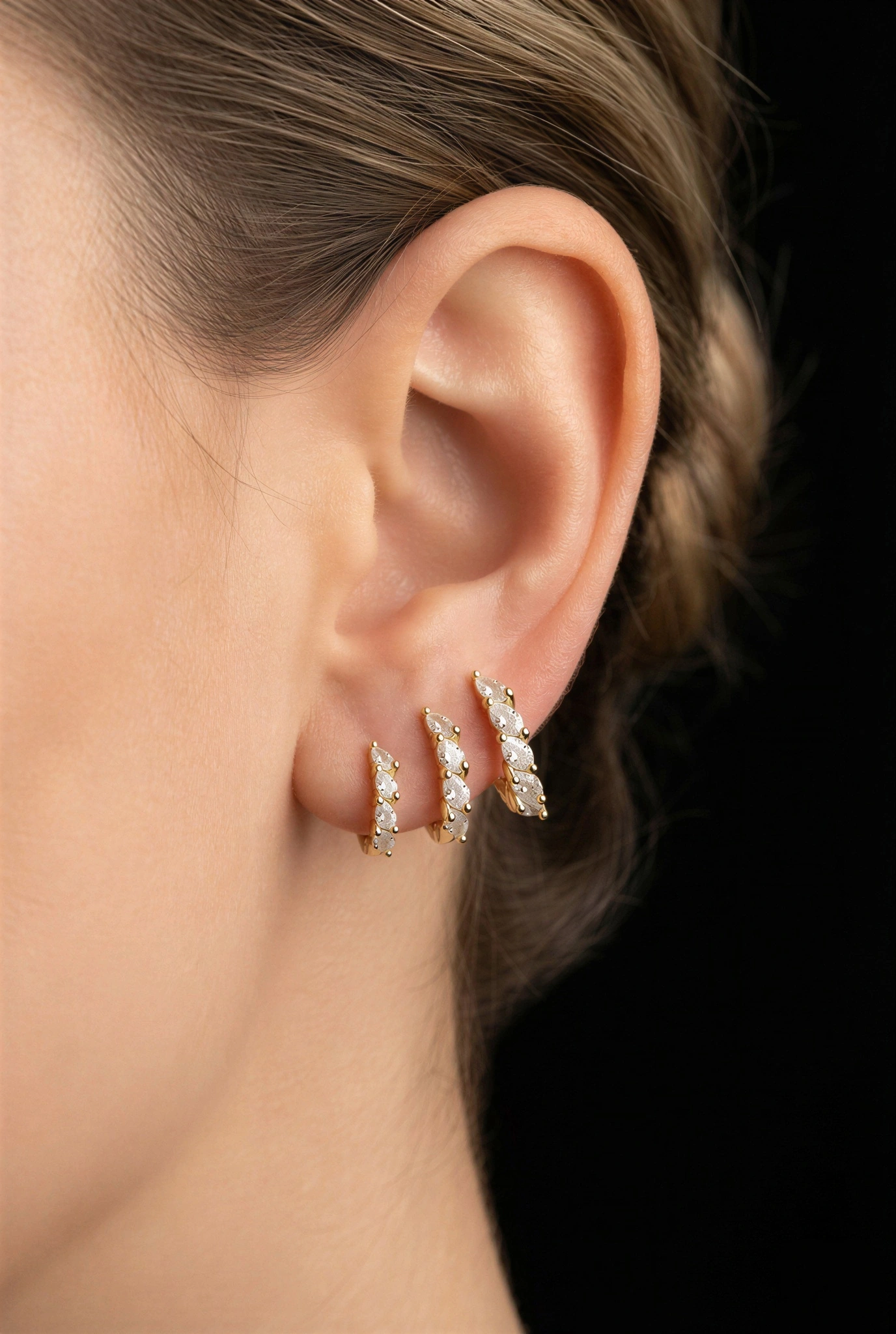 Sıralı Damla Model Gold Altın Kaplama Üçlü Küpe