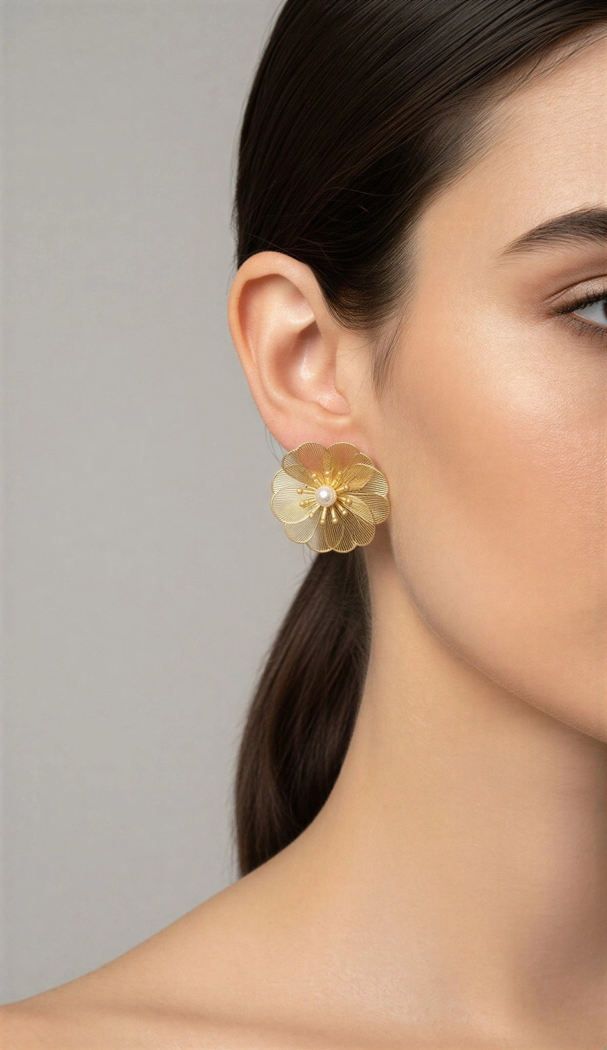 Transparan Çiçek Model Gold Altın Kaplama Küpe