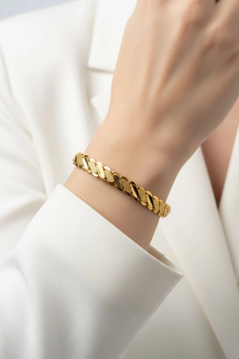 Desenli Başak Model Gold Altın Kaplama Bilezik