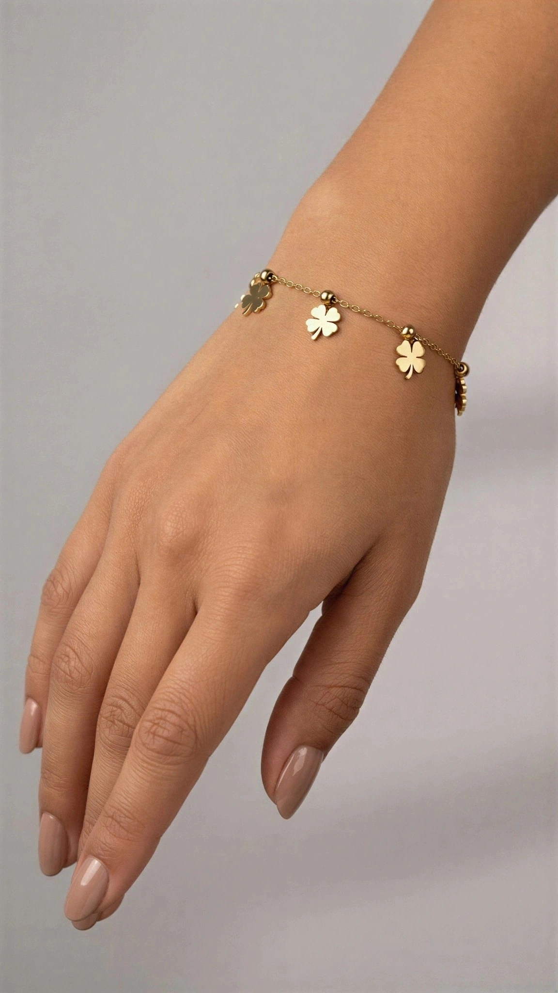 Sıralı Çoklu Yonca Model Gold Altın Kaplama Çelik Bileklik