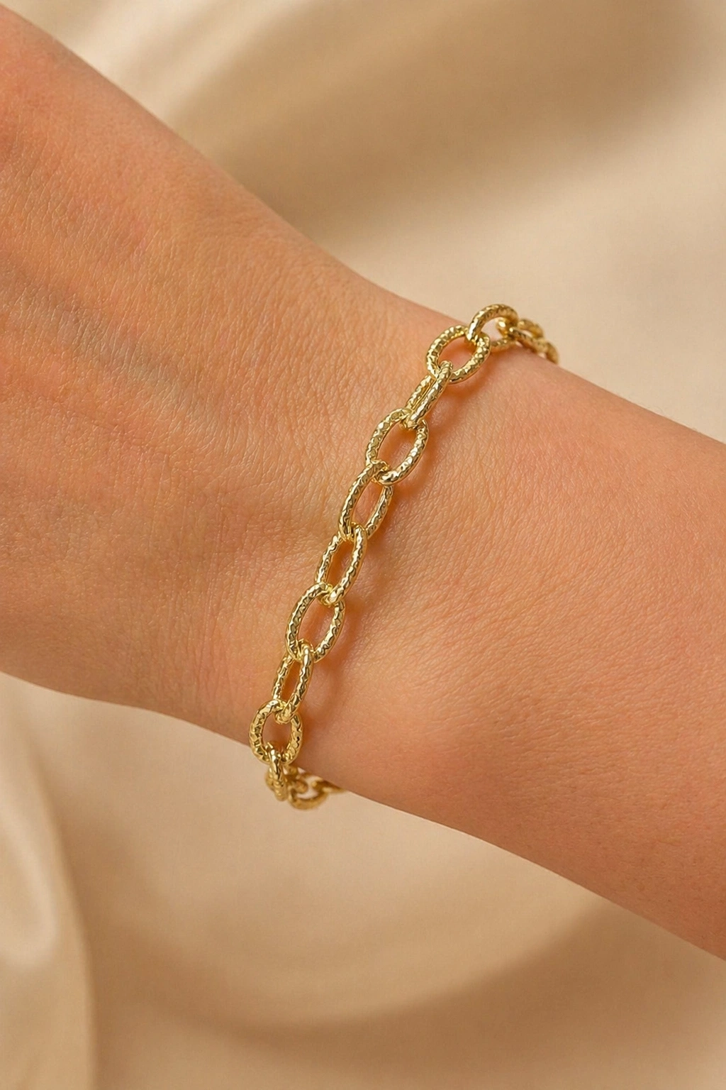 Desenli Elips Model Gold Altın Kaplama Bileklik