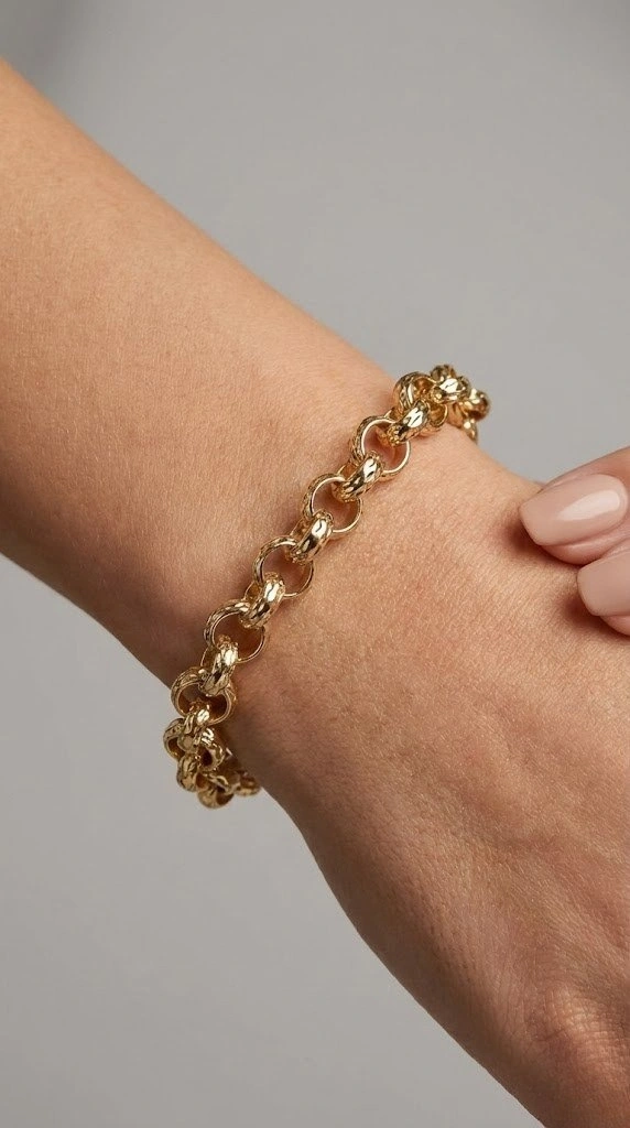 Desenli Halka Geçiş Gold Altın Kaplama Bileklik