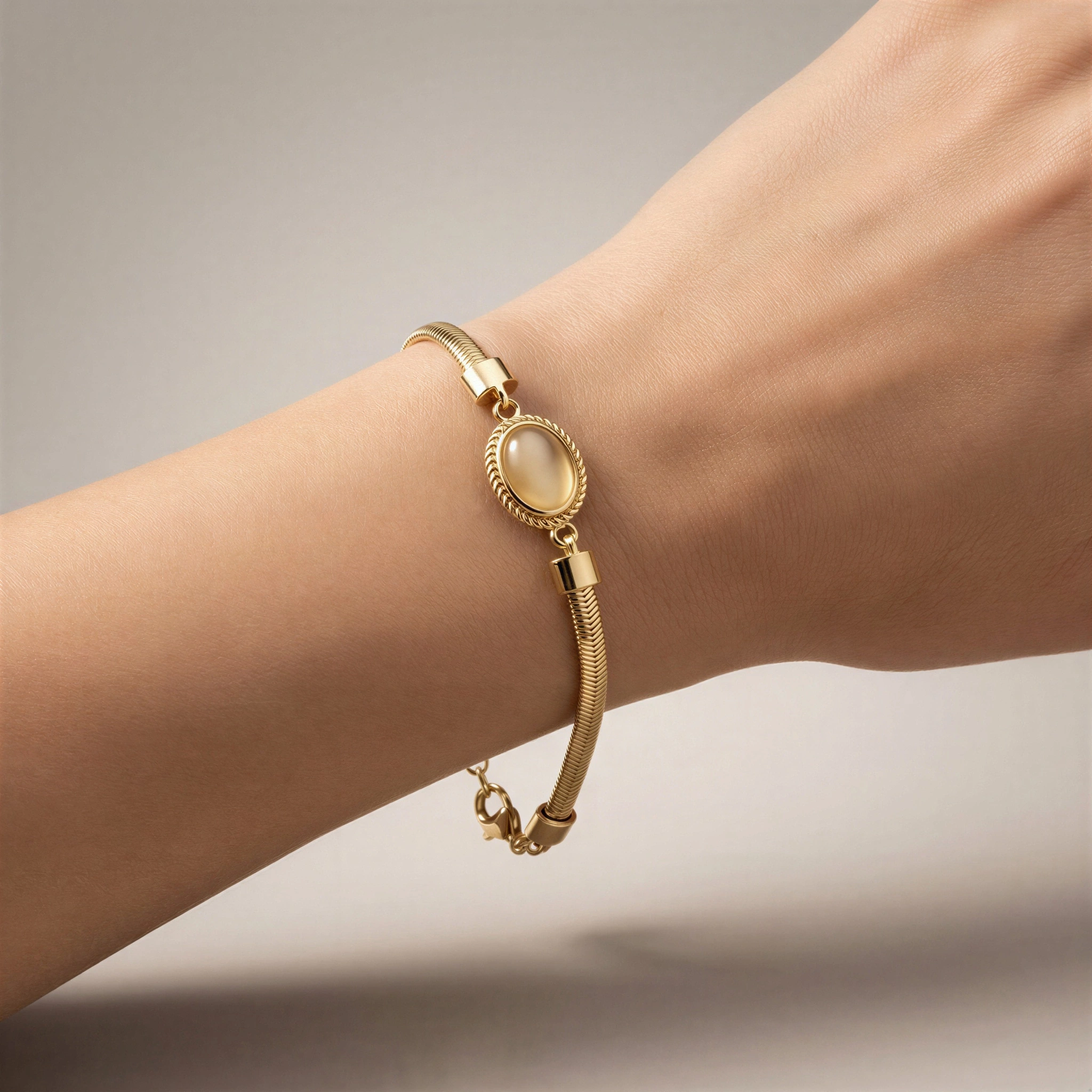 İtalyan Zincir Sedef Renk Taş Model Gold Altın Kaplama Bileklik