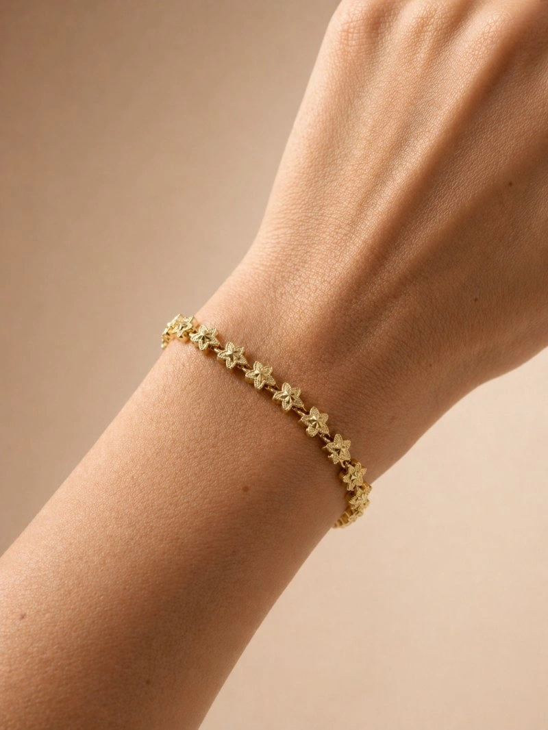 Desenli Yıldız Model Gold Altın Kaplama Bileklik