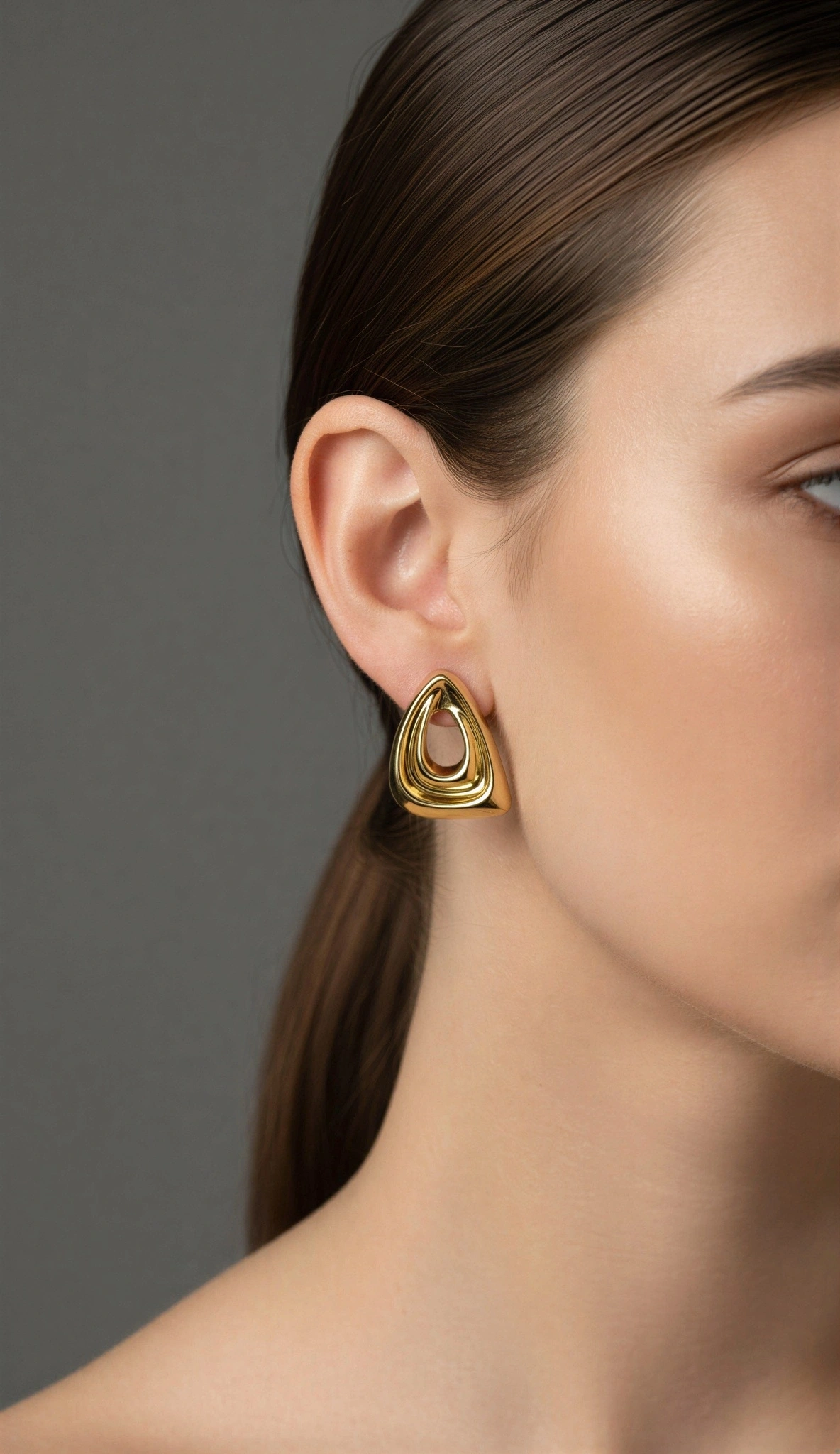 Delik Üçgen Model Gold Altın Kaplama Küpe