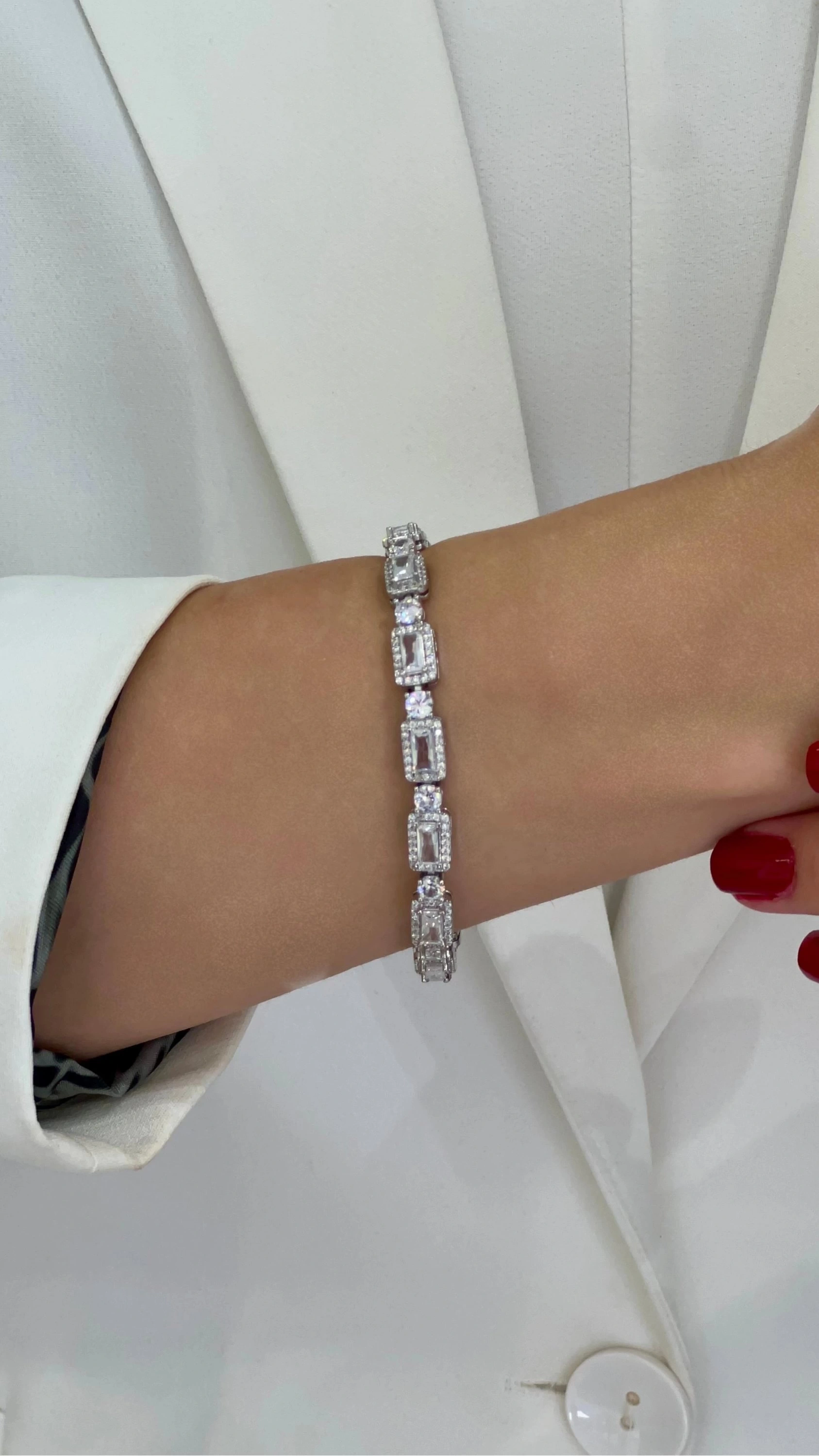 Öne çıkan bir tasarıma sahip olan Dikdörtgen Model Çiçek Detay Beyaz Altın Kaplama Bileklik, şıklığınızı tamamlayacak harika bir seçenektir. Bu bileklik ile tarzınıza zarif bir dokunuş ekleyebilirsiniz.