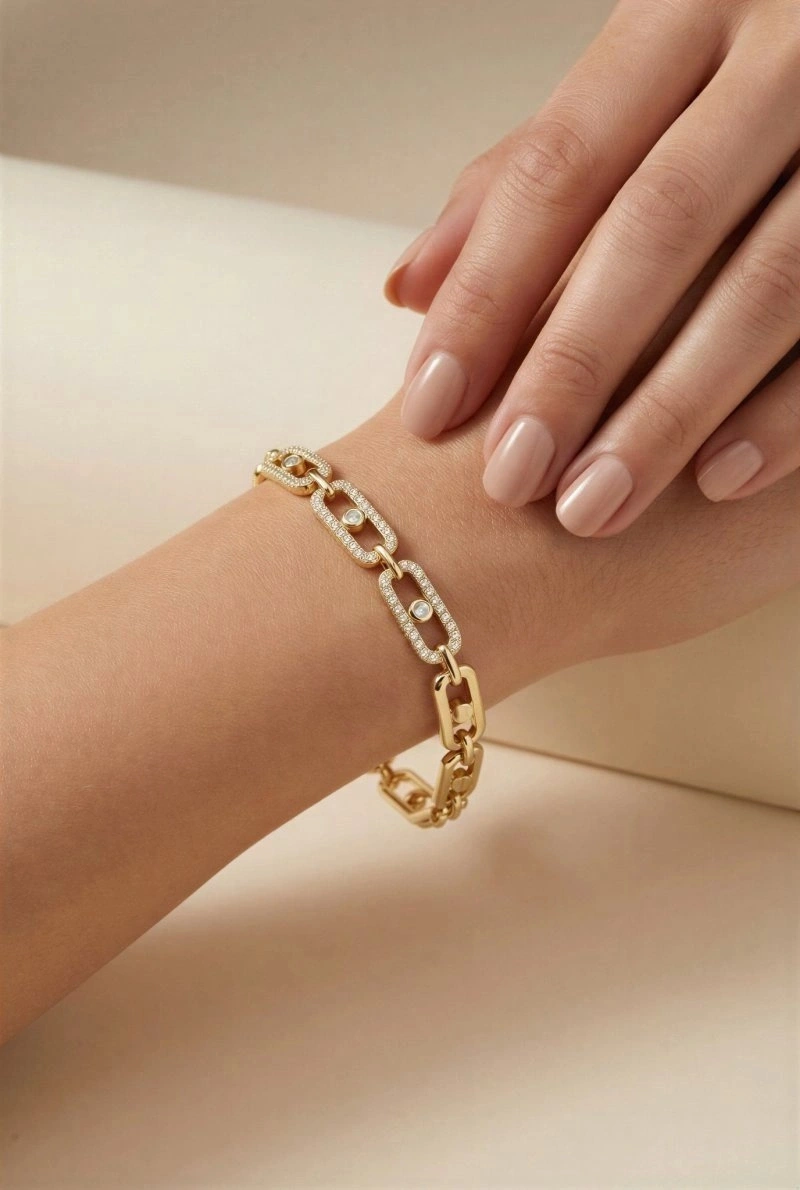 Dikdörtgen Model Yarı Taşlı Gold Altın Kaplama Bileklik
