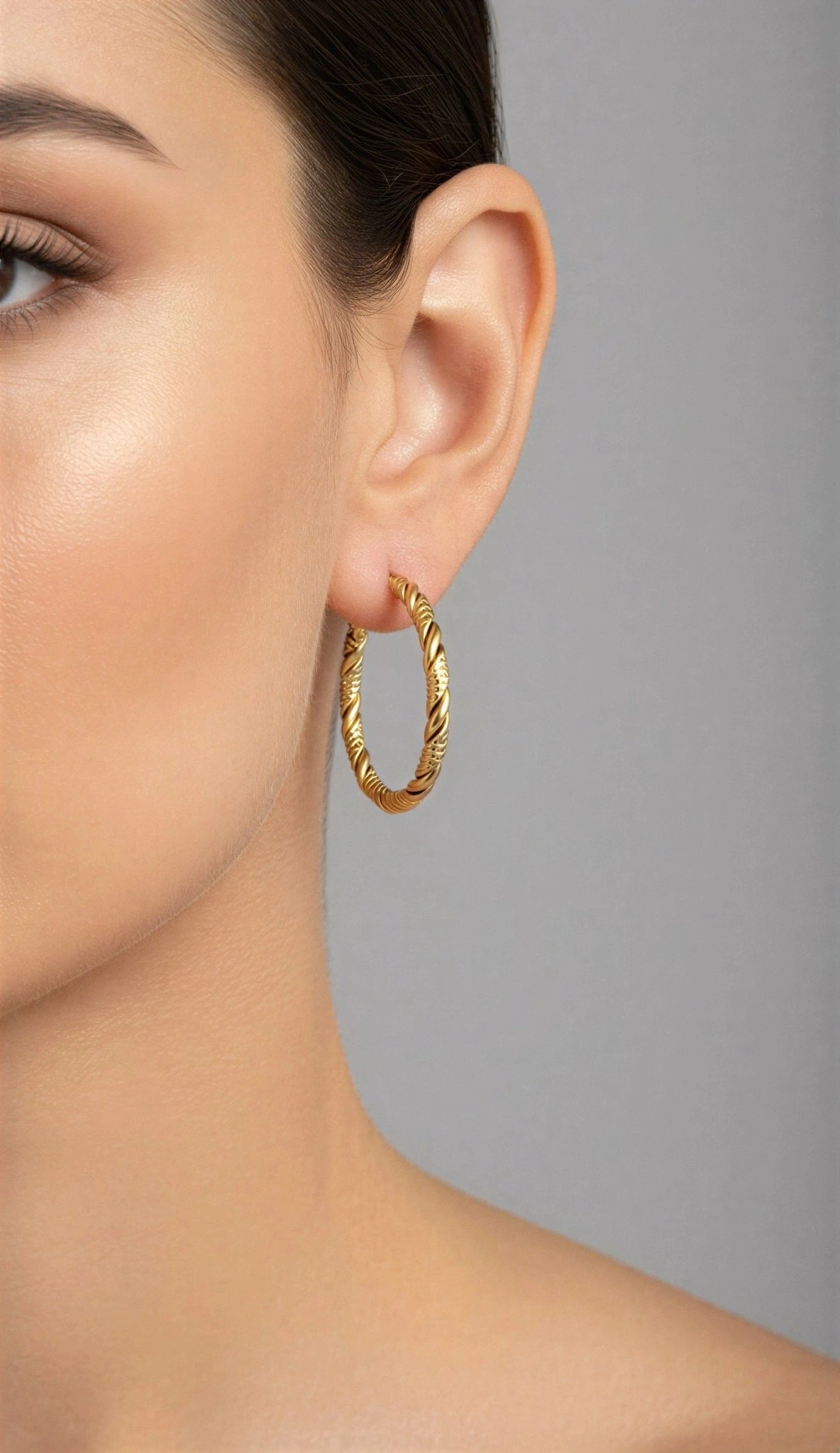 Burgu Desen Halka Model Gold Altın Kaplama Çelik Küpe