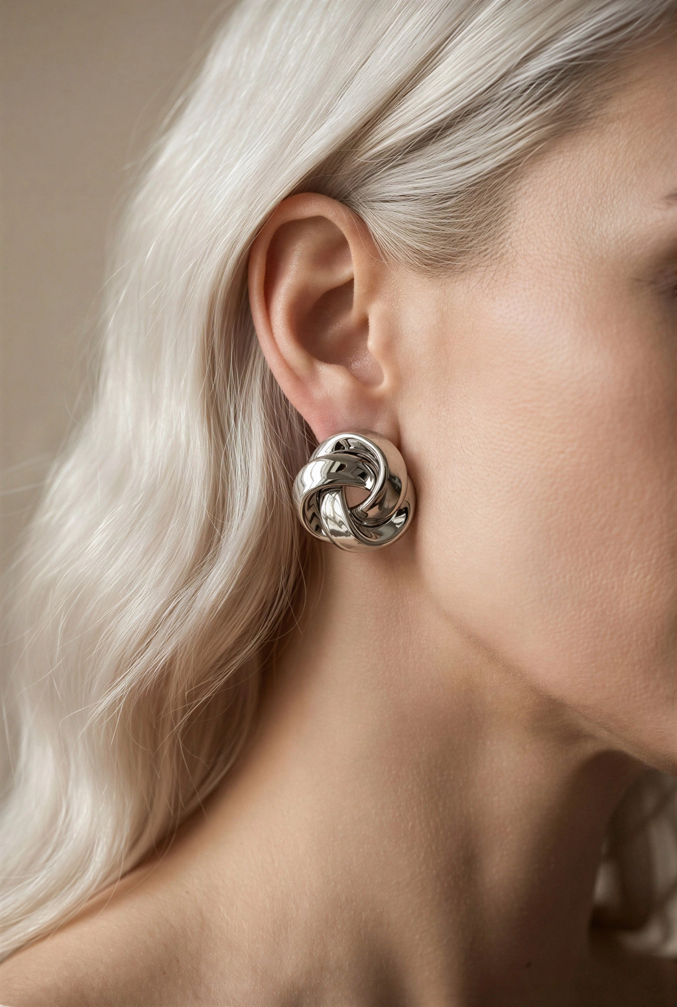 Döngü Model Beyaz Altın Kaplama Küpe