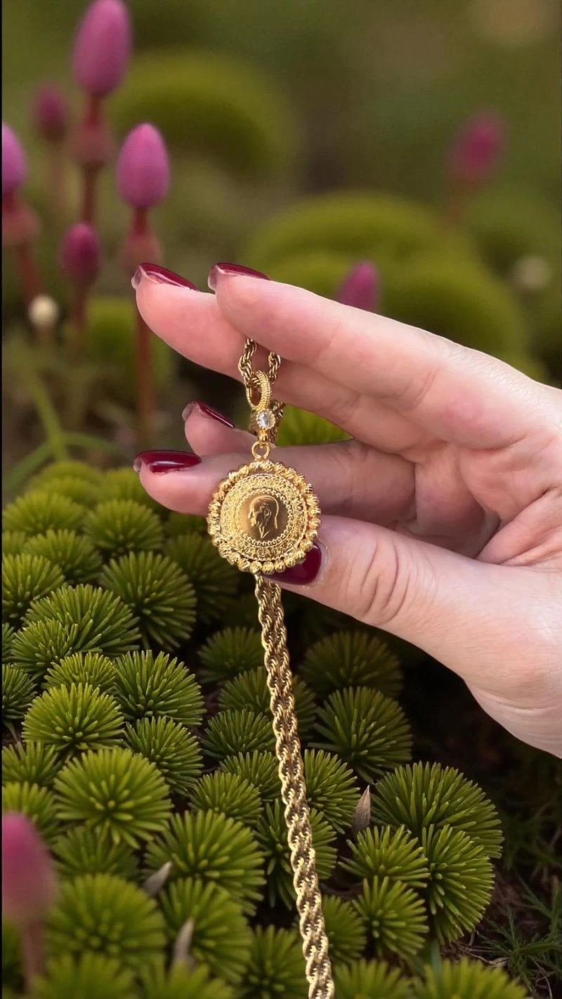 Dorika Detay Çeyrek Model Gold Altın Kaplama Kolye