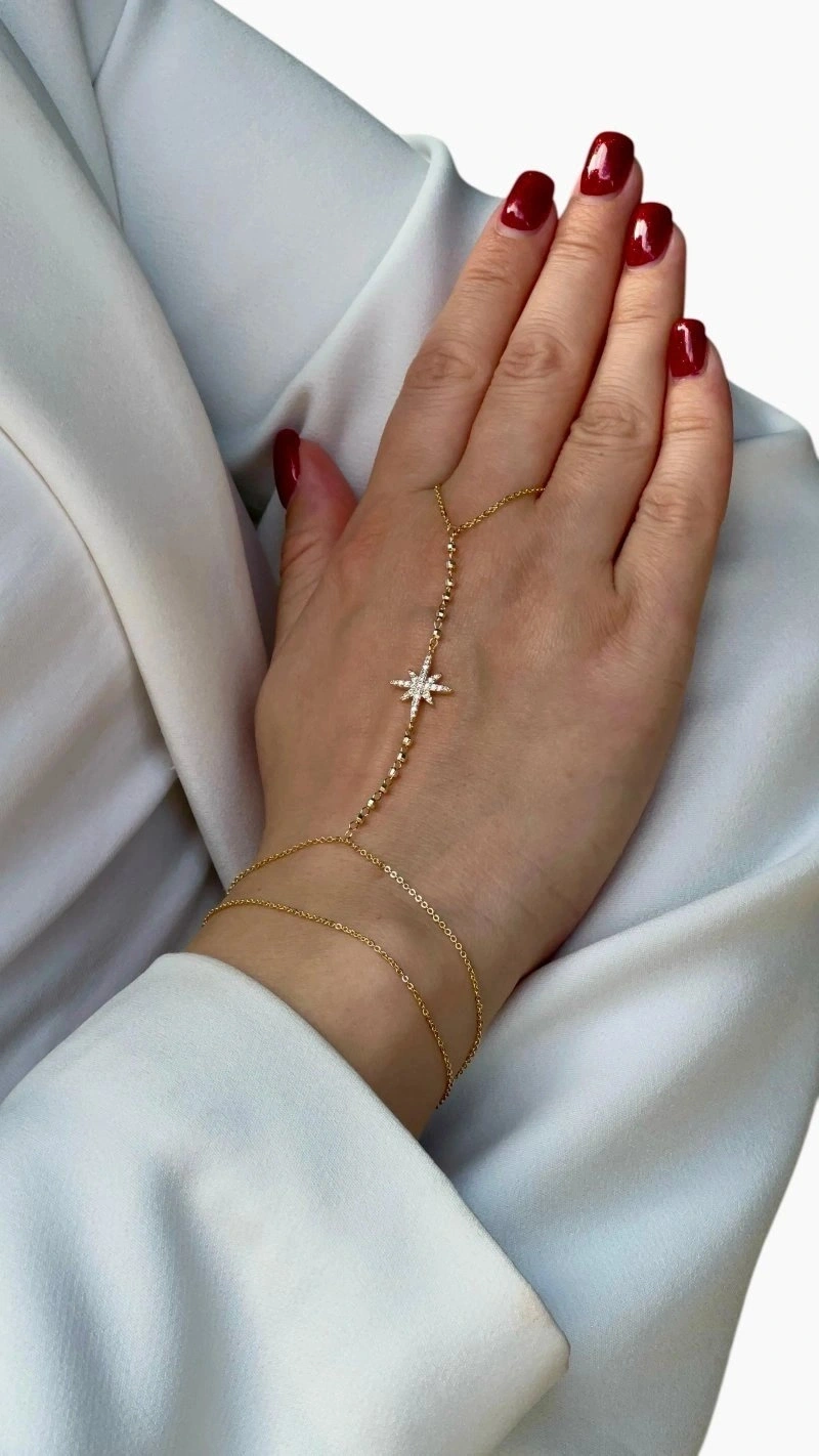 Dorika Model Taşlı Yıldız Detay Gold Altın Kaplama Şahmeran