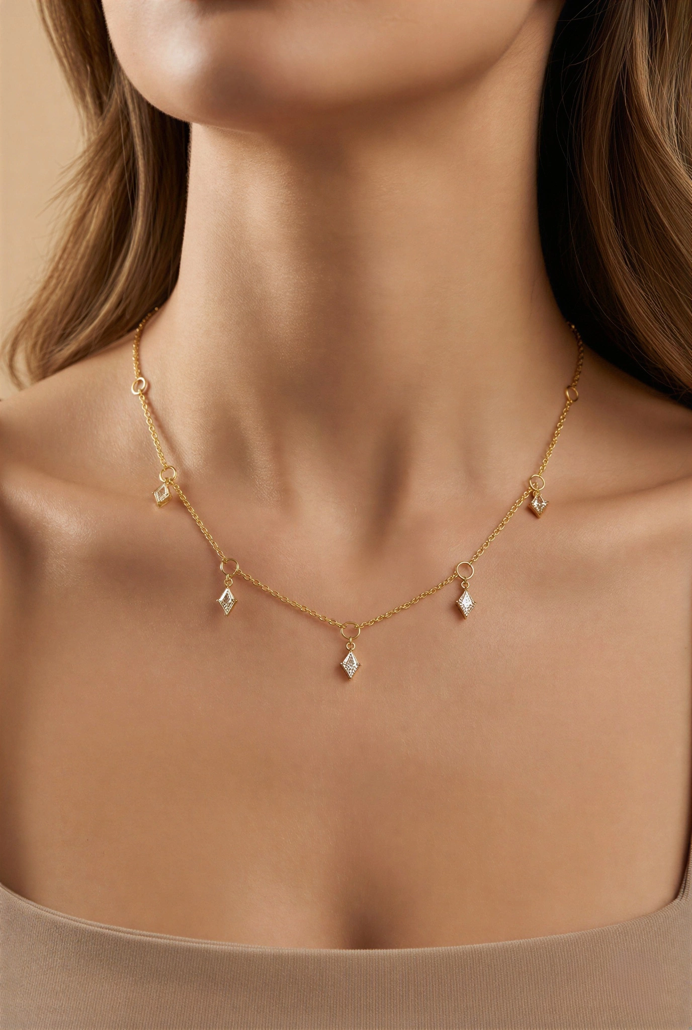 Baklava Model Taş Detay Gold Altın Kaplama Kolye