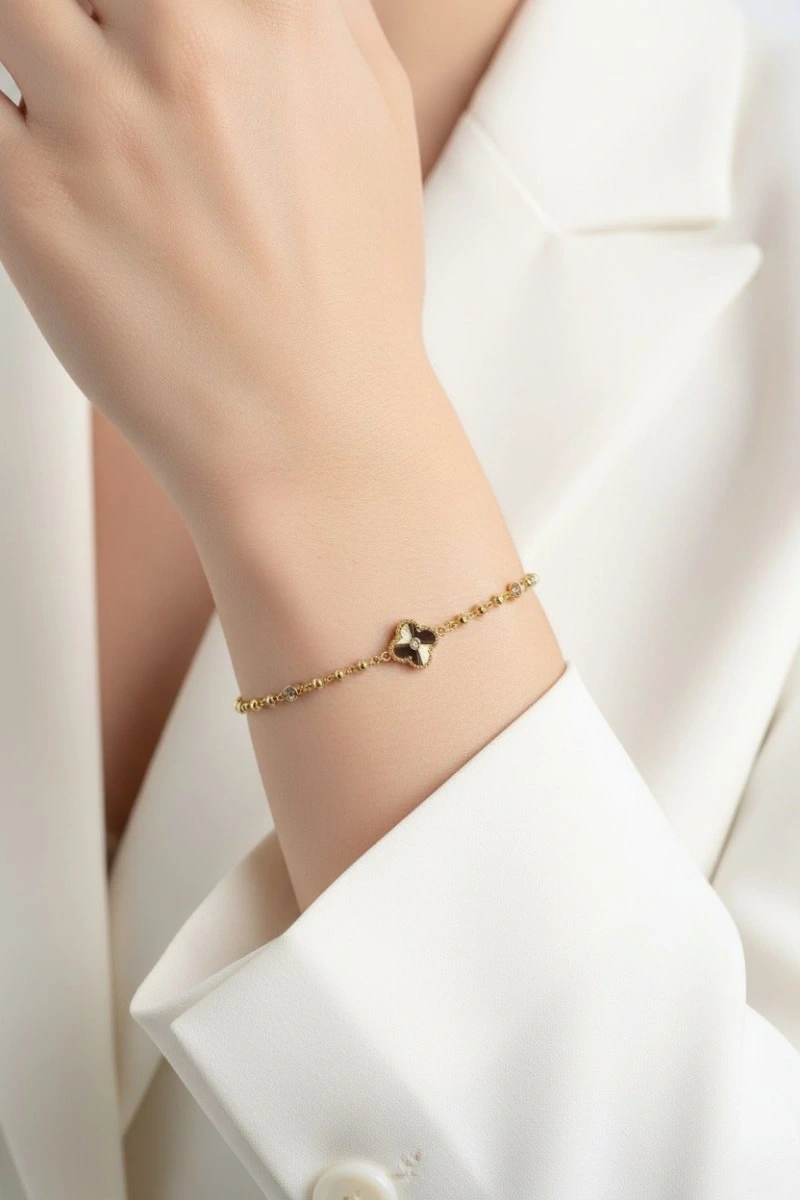 Dorika Zincir Taş Detay Yonca Model Gold Altın Kaplama Bileklik