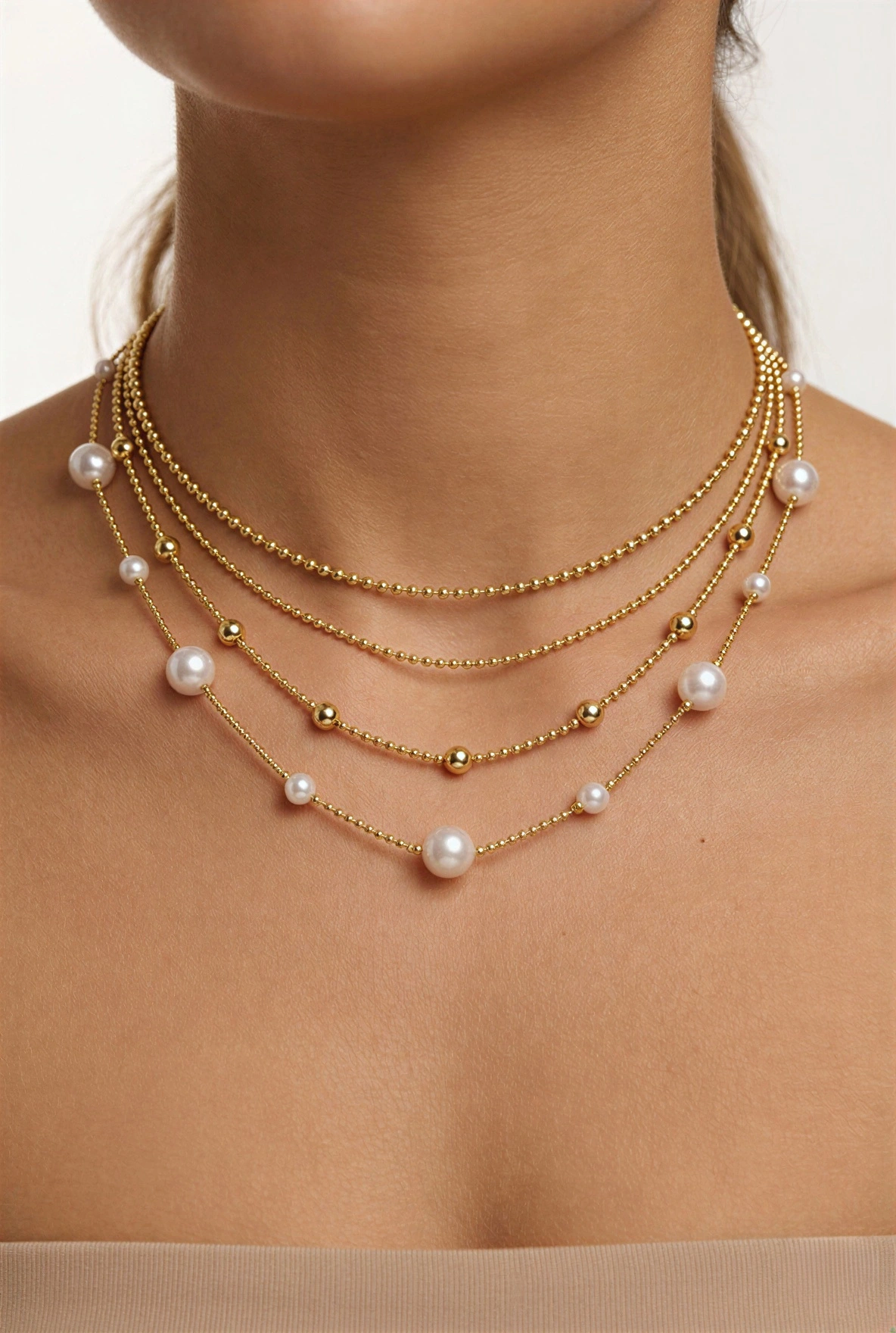 Dört Sıra İnci Model Gold Altın Kaplama Kolye