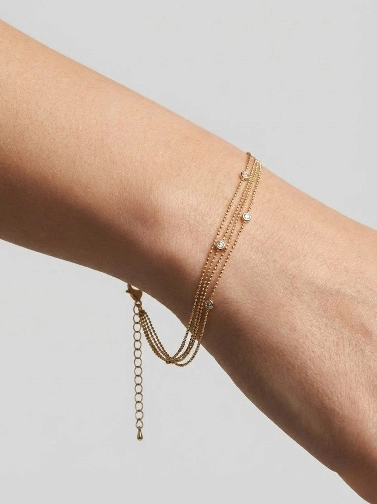 Dört Sıra Taş Detay Gold Altın Kaplama Bileklik
