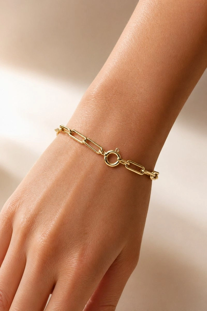 Dümen Kilit Dikdörtgen Model Gold Altın Kaplama Bileklik