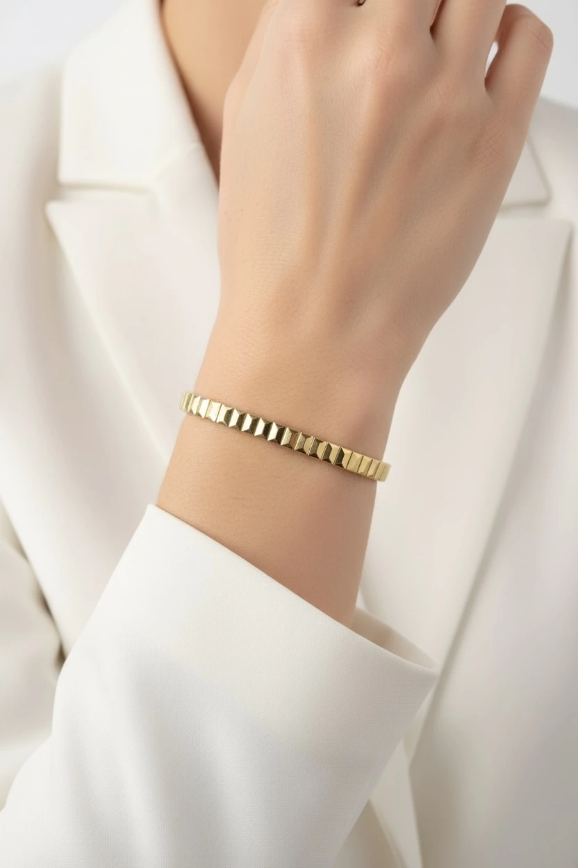 Düz Dikdörtgen Model Gold Altın Kaplama Bileklik