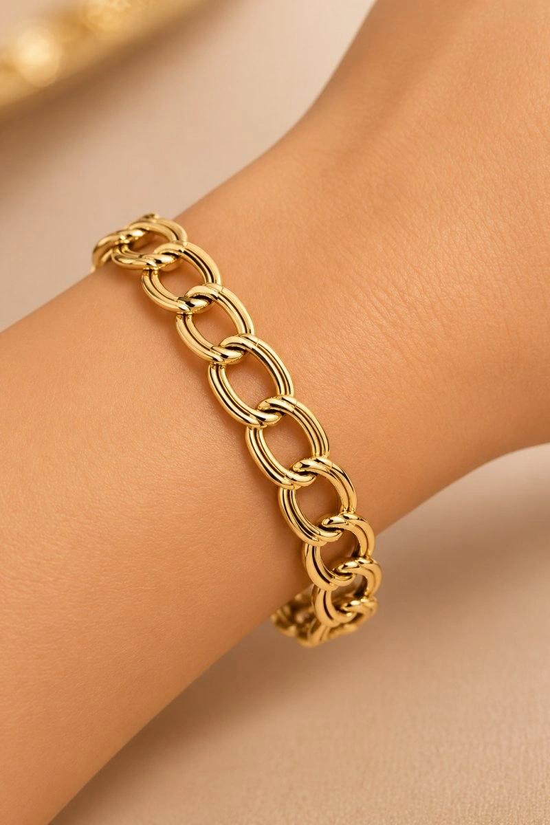 Düz Galaksi Model Gold Altın Kaplama Bileklik