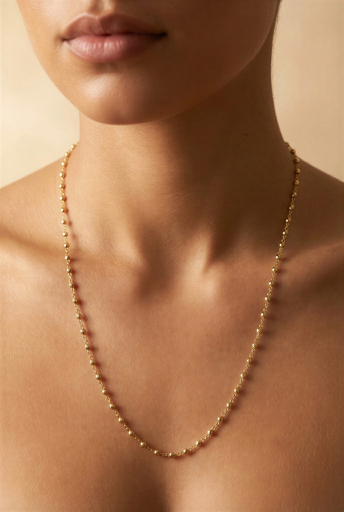 Düz Sıralı Top Model Gold Altın Kaplama Kolye